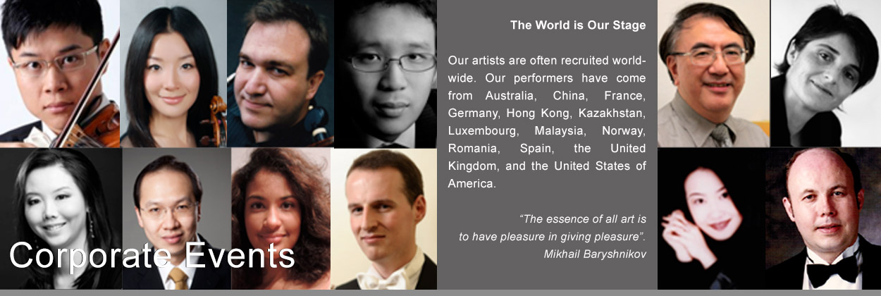 Since the choice of artists and music often represent the highlight of an event, it becomes essential select to the most suitable performers and program. Besides having over 15 years of successful experience in selecting artists worldwide for an impressive array of clients, we also develop the programs, organize rehearsals, and supervise the implementation of each event.