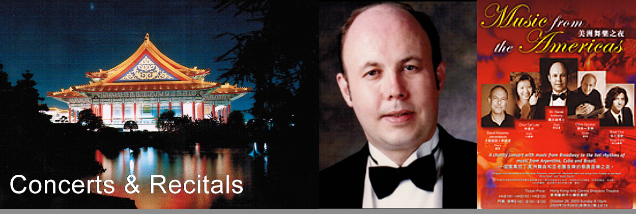 1: National Concert Hall in Taipei, Taiwan 2: Dr. Derek Anthony, Bass 3: Poster for Fundraising Concert at Government House